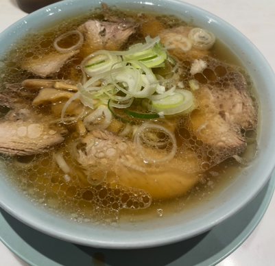 丼にはスープが並々と注がれ、醤油の香りが立ち上ります。見た目はボリューム満点ですが、意外と飲めてしまうバランスの良さ。
